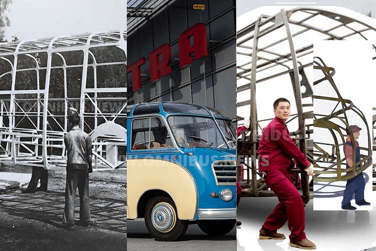 Setra feiert in diesem Jahr den 75. Geburtstag des ersten sich selbsttragenden Reisebus S 8 aus dem Jahr 1951. Foto: DaimlerTruck, Ankai, Schreiber; Montage: omnibus.news