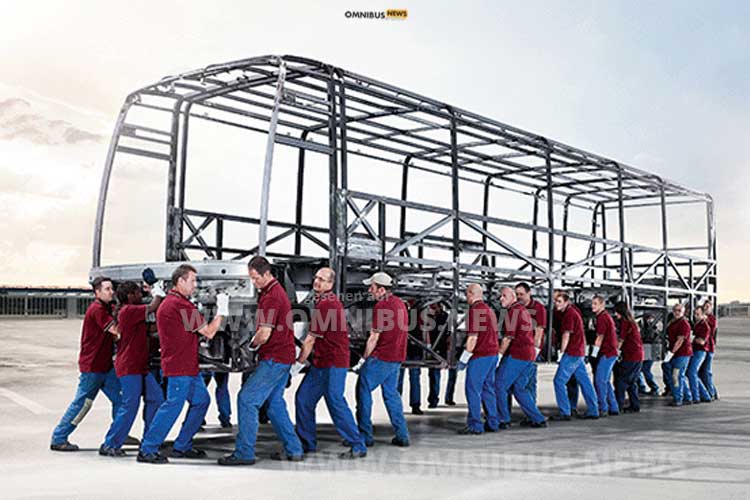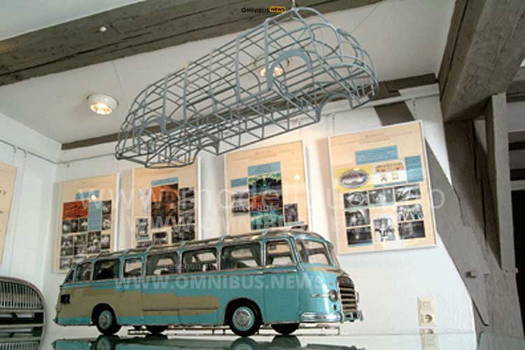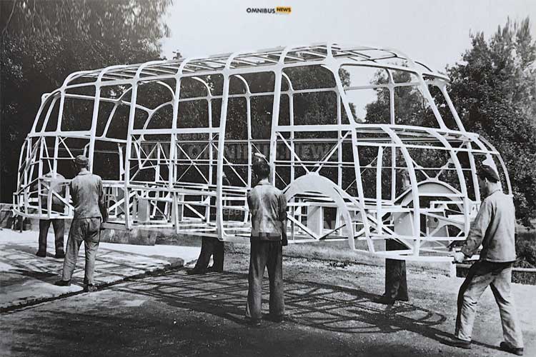 Und nebenbei gab es auch noch mehr Gepäckraum. 1951 war es so weit: Neben dem Fahrzeug sorgte besonders ein Foto für Aufsehen in der Buswelt: Sechs Arbeiter trugen das Gitterrohrgestell der neuen Konstruktion. Es war der Beweis dafür, dass eine Gerippestruktur mit integrierter Bodengruppe eine solch hohe Stabilität hatte, dass sie sich selbst trug und damit ein Omnibus fertiggestellt werden konnte. Außerdem hatte der Omnibusbau damit endgültig das Lastwagenfahrgestell-Problem hinter sich gelassen und der Markenname geboren.