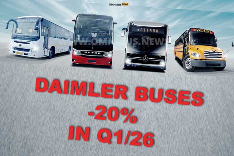 Deutlich weniger verkaufte Omnibusse haben bei Daimler Truck für einen Absatzrückgang im 1. Quartal 2026 im Segment der Omnibusse im Vergleich zum Vorjahreszeitraum gesorgt. Der Absatz bei den Omnibussen ging von Januar bis März um ein Fünftel auf 4.972 Fahrzeuge zurück, wenn man hierfür den Vorjahreszeitraum als Vergleich nimmt. Eine Erklärung für den Absatzeinbruch von -20 Prozent lieferte der Nutzfahrzeughersteller im Rahmen der Veröffentlichung der Zahlen noch nicht. Der schwächelnde Absatz von Daimler Buses deutete sich trotz einen insgesamt guten Jahres 2025 bereits in Q4/25, denn hier lag der Absatz bei 7.315 Einheiten (Q4/24: 7.624).