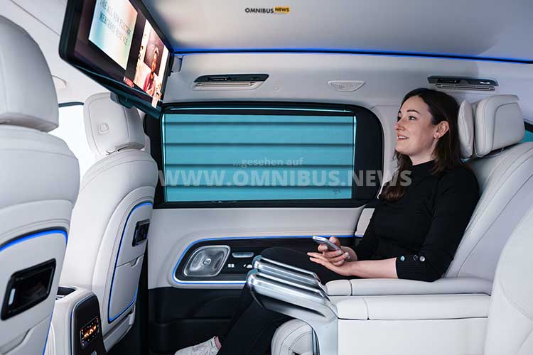 Viel Komfort genießen die Fahrgäste, ob elektrisch betätigte Schiebetüren und voll versenkbare Fenster. Was an Sitzen wo verbaut wird, entscheidet der Kunde, denn das rollende Wohnzimmer lässt sich aus den neu entwickelten Einzelsitzen und Sitzbänken frei gestalten. Ob manuell verstellbarer Einzelsitz oder elektrisch verstellbarer Luxussessel. Auf elektrisch verstellbaren Schienen lassen sich die Luxussessel einzeln bewegen – und das sogar per App. Mercedes-Benz spricht von einem Sitzballett…