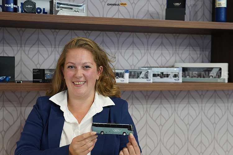 Zurück zur Weltpremiere und dem neuen Modellbus des Futura 3, der heute von der VDL Bus Group produziert wird. Hergestellt von Holland Oto und rechtzeitig zum Start der Busworld 2025 ausgeliefert wird auch der kleine Futura 3 ein Bestseller werden, der eventuell noch auf der Messe ausverkauft sein könnte, denn die erste Auflage des Werbemodell ist limitiert, wie Kimberly erklärt. Aber man habe ja zum Glück noch zahlreiche weitere Modellbusse der Omnibusse von VDL im Merchandising -Shop auf der Messe und, seit der Übernahme von Van Hool durch VDL, nun auch noch diese, ebenfalls 87-fach verkleinerten Modelle, im Angebot. (VDL/omnibus.news/Sr)
