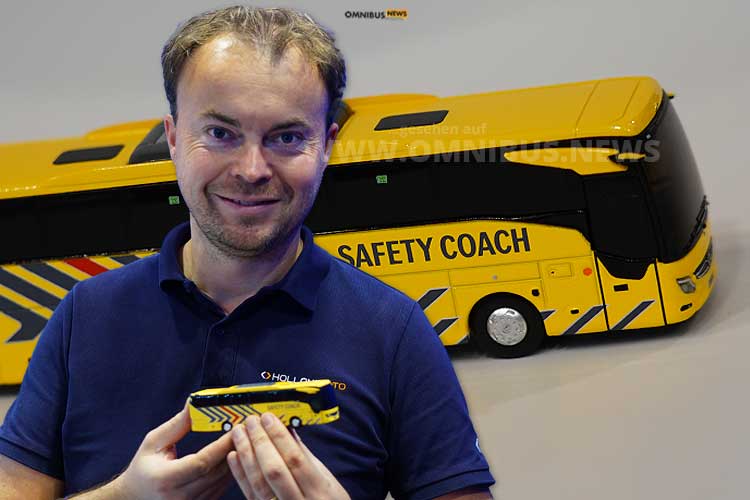 Pünktlich zur Eröffnung der Busworld 2025 stellt Holland Oto als Formneuheit einen Mercedes-Benz Tourismo im Maßstab 1/87 vor! Statt Rietze liefert nun Holland Oto neue Modellbusse mit Stern! Die Premiere macht der zweiachsige Tourismo in der Ausführung als Safety Coach. Die Miniatur entspricht in allen Details dem großen Vorbild, das Daimler Buses vor einem Jahr zur IAA Transportation vorgestellt hat. Seit dem 7. Juli 2024 schreibt die aktualisierte „General Safety Regulation“ (GSR) der EU für alle neu zugelassenen Busse eine Reihe von Fahrerassistenzsystemen zwingend vor, um so die Sicherheit im Straßenverkehr für alle Beteiligten zu erhöhen.