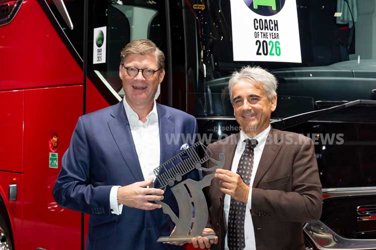 „Höchste Sicherheitsstandards und ein Maximum an effektiver Wirtschaftlichkeit sind nur zwei Bereiche, mit denen die Premium Baureihe auf sich aufmerksam macht. Eine Vielzahl technischer Innovationen und zeitgemäßer Lösungen bilden die Basis, die diese internationale Trophäe rechtfertigen.“ „Für die Jury ist die Setra TopClass der eindeutige Gewinner der ‘Coach of the Year 2026’‑Trophäe. Uns hat in erster Linie das konsequent geschnürte Paket an Fahrerassistenz- und Sicherheitssystemen überzeugt. Deren technische Finesse und die hohe Effektivität beweist, wie nachdrücklich sich die Marke mit dieser Premium‑Baureihe für das Wohlergehen von Passagieren und Fahrern auf Reisen einsetzt“, so Gianluca Ventura, der neue Präsident der Jury.