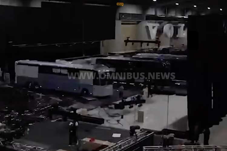 Schon beim Aufbau des Messestandes gab es einen Sichtschutz, der neue 9800 war zum Teil mit Folien vor neugierigen Blicken geschützt… Foto: Screenshot Volvo Buses Mexiko